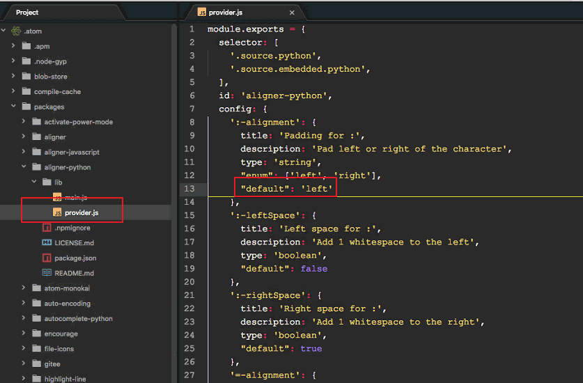 需要注意是,只安装一个atom-aligner插件是不够的,得配合不同语言的另一些插件,比如我写python代码,得另外装一个aligner-python插件才可以。